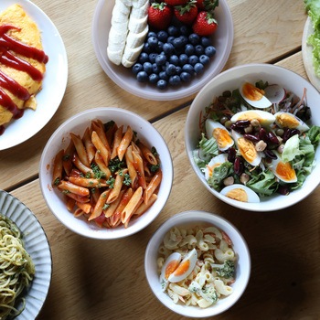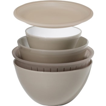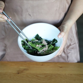 調味料や卵を混ぜる14cmボウル、野菜を和えるのにちょうどいい18cmボウル、サラダや温野菜に使いやすい20cmボウル。さらにザルとフタ&お皿を組み合わせれば、野菜を洗って水切り、加熱後はそのまま食卓に並べることも可能です。