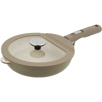 材質本体/アルミニウム合金、内・外面/セラミック塗膜加工+ダイヤモンドコートグレージュ質量(g)570サイズ(cm)24寸法(cm)(約)27×25×5.5深さ(cm)内面:約5内容量1個