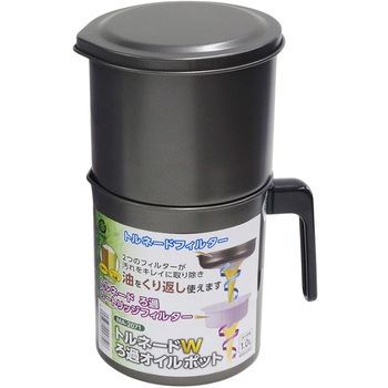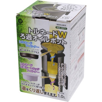 2つのフィルターが汚れをキレイに取り除き油をくり返し使えます。フィルターとカートリッジをトルネード形状にすることで素早くろ過します。トルネードフィルターで少しずつ注がなくても1.0Lの油を1度にろ過できます。カートリッジ1つで4L分(目安)くり返し使えて経済的。本体はふっ素樹脂塗膜加工でお手入れ簡単。