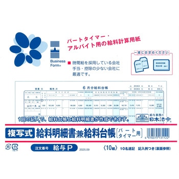 パートタイマー用 複写式 給与明細書兼給与台帳