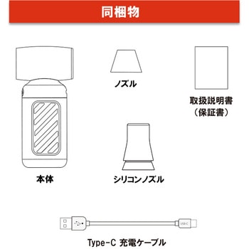 本体、ノズル、シリコンノズル、Type-C充電ケーブル、取扱説明書(保証書)