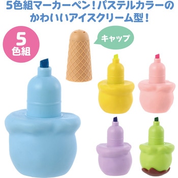 見た目がとってもかわいいアイスクリーム型のマーカーペン5色セットです。パステル調の蛍光カラーでイラストも文字も明るく彩れます。ブルー・イエロー・ピンク・パープル・グリーンの5色がセットになっており、気分に合わせて使い分けできます。アイス部分を積み重ねたり、コーンがキャップになったユニークなデザインでギフトにもぴったりです。持つだけで楽しくなる、写真映え抜群のステーショナリーです。学用品やプレゼント、イベント景品にもおすすめのアイテムです。