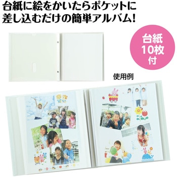絵や写真を入れるだけ!世界にひとつのオリジナルアルバム!表紙ポケットに絵や写真を差し込むだけでオリジナル表紙が完成するアルバムです。台紙10枚付きで作品や写真をきれいに保管できます。軽くて扱いやすく、学校作品の保存や行事記録、プレゼント用にも活躍します。