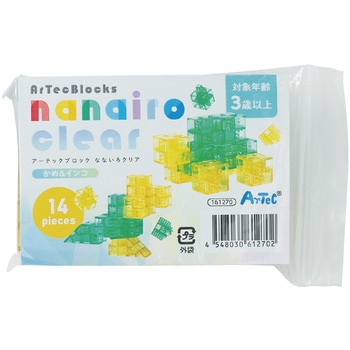世界25か国、全国4,000か所以上の園で採用されているアーテックブロックのクリアカラーバージョンの「なないろクリア ミニパック かめ&インコ」です。たて・よこ・ななめに自由にさしこめ、少ないピースでも多彩な形を作れます。光を透かす透明ブロックが美しく、組み方次第で立体的な作品が簡単に完成。創造力や集中力を伸ばす知育玩具です。このセットでは、かめとインコの2種類がつくれます。【「アーテックブロック」とは】日本で生まれた新しいブロックです。世界25か国、全国4,000か所以上の幼稚園、保育園に採用!2014年にはグッド・トイ賞にも選ばれた安心の日本製ブロックです。子供から大人までずーっと遊べます。すべての面に穴があいた独自構造のブロック。全方向への連結が可能で、小さいお子さまでも、想像した形をどんどん形にしていけます。子供から大人まで、さまざまな遊び方ができる楽しいブロックです。【対象年齢】3歳以上