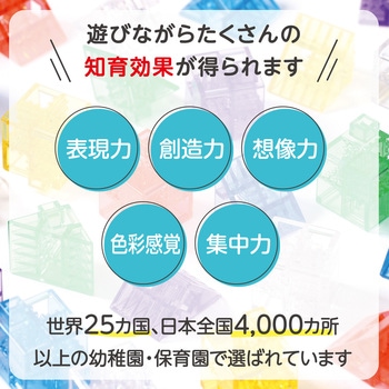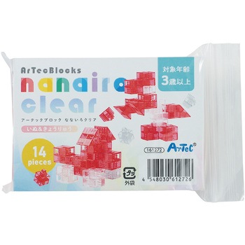 世界25か国、全国4,000か所以上の園で採用されているアーテックブロックのクリアカラーバージョンの「なないろクリア ミニパック 犬&恐竜」です。たて・よこ・ななめに自由にさしこめ、少ないピースでも多彩な形を作れます。光を透かす透明ブロックが美しく、組み方次第で立体的な作品が簡単に完成。創造力や集中力を伸ばす知育玩具です。このセットでは、犬と恐竜の2種類がつくれます。【「アーテックブロック」とは】日本で生まれた新しいブロックです。世界25か国、全国4,000か所以上の幼稚園、保育園に採用!2014年にはグッド・トイ賞にも選ばれた安心の日本製ブロックです。子供から大人までずーっと遊べます。すべての面に穴があいた独自構造のブロック。全方向への連結が可能で、小さいお子さまでも、想像した形をどんどん形にしていけます。子供から大人まで、さまざまな遊び方ができる楽しいブロックです。【対象年齢】3歳以上
