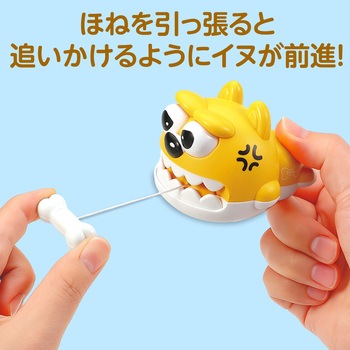 ほねを引くとひもが巻き取られ、犬が追いかけるように前進するユニークなおもちゃです。。怒った表情とコミカルな動きが子どもたちを夢中にさせます。ゼンマイ式なので電池不要で繰り返し遊べます。コンパクトサイズで持ち運びしやすく、どこでも楽しく遊べます。かわいいデザインでお子さまの興味を引きつけ、イベント景品にもおすすめです。