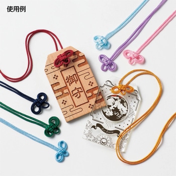 オリジナルのお守りづくりに使える、縁起の良い二重叶結びのお守り紐です。結び目は表が「口」、裏が「十」の形になり、「願いが叶う」意味を持つ伝統的な結び方です。シンプルながら美しい形で、願いが叶う象徴として人気の結び方です。ベント、ワークショップの素材としてもおすすめです。