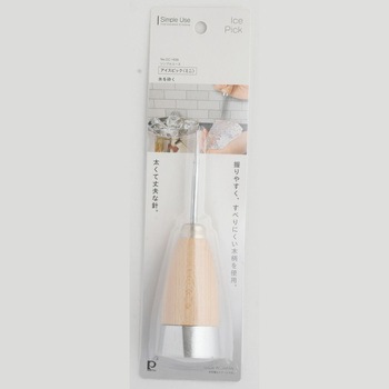 握りやすく、すべりにくい木柄ハンドル。針はベースが太いので丈夫です。尻金が鉄鋳物製なので、氷をくだけます