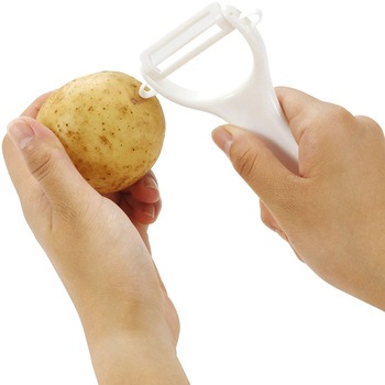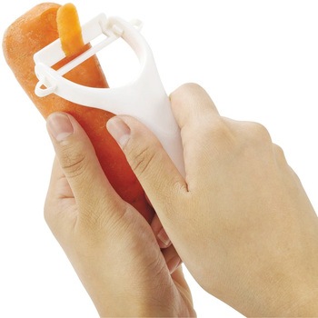 硬質セラミック製の刃で切れ味持続。じゃがいもや人参の皮むきに。刃がセラミック製なので、サビることなく切れ味が続きます。お手入れも簡単。芽取り付きなので、じゃがいもなどの芽取りにも便利です。握りやすいハンドル形状です