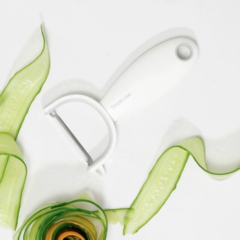 握りやすい丸型グリップ。じゃがいもや人参の皮むきに。野菜の表面にそって刃がフィットするのできれいに皮がむけます。芽取り付きなので、じゃがいもなどの芽取りにも便利です