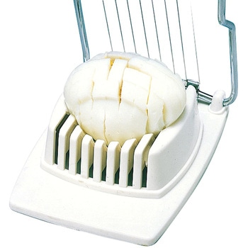 ゆでたまごのスライスが簡単・きれいに。ゆでたまごを厚みの揃った輪切りにカットできます。横の輪切り・縦の輪切り・縦横に使ってみじん切りに。カッター部は丈夫で衛生的なステンレス製です