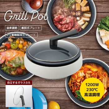 温度調節80~230℃に対応したグリル鍋です。着脱式プレートを採用し、フッ素樹脂加工でこびりつきにくくお手入れも簡単。自立するガラスふたで調理中の様子を確認しやすく、鍋料理から炒め物まで幅広く使えます。1200Wの高火力で、日常の調理からパーティー料理まで活躍します。