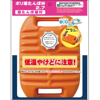 シンプルで持ち運びしやすい、繰り返し使えるポリ容器の湯たんぽ【2.7L】。両側に持ち手が付いており、安定して持てるので持ち運びしやすい。専用の袋付属。ほかの暖房器具と比べて空気が乾燥することもないので、カラダにやさしい温もりを保てる。のどや肌の乾燥が気になるとき、就寝前、仕事中、勉強中におすすめ。製品安全協会が定める安全基準に適合。