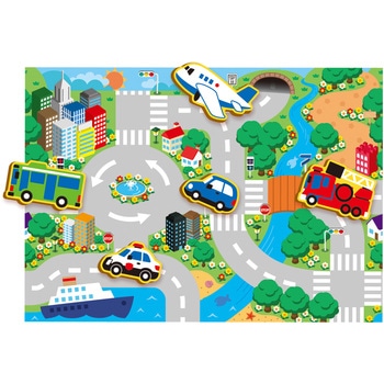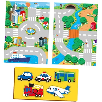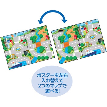 水だけでピタッ!おふろでくるまあそび!おふろでくるま遊びができるEVAおもちゃです。水だけでピタッと貼れるので、簡単に楽しく遊べます。左右を入れ替えて使えるマップが2枚付属しており、組み合わせ次第でマップが変化します。何度も貼ったりはがしたりできるので、のりもの遊びやごっこ遊びにぴったりです。小さなお子さまの想像力を育みます。