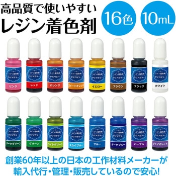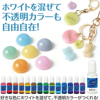 高濃度で少量でもしっかり色づくレジン用着色剤です。特徴1:レジン制作のストレスを解消!さらりとした粘度でレジン液とムラなく混ざり、スピーディーに制作できます。特徴2:美しい発色!時間がたっても変色せず、鮮やかな色合いと、高い透明感のある発色を保ちます。特徴3:混色も可能!自分だけのオリジナルカラーを作ることができます。ホワイトを混ぜて不透明カラーも自由自在。高品質で扱いやすく、ハンドメイド制作を楽しく彩ります。安心と信頼の日本のメーカーが輸入代行!創業60年以上の工作材料メーカーが品質管理し販売しておりますので、安心してご使用ください。