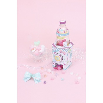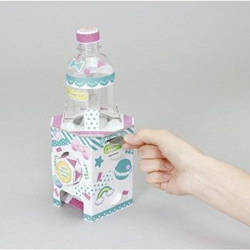 ペットボトルを使ってガチャガチャ風のキャンディポットが作れるキットです。かわいいデザインシール付きで、ゆめかわデザインに自由にデコレーションできます。インテリアにもなる貯金箱としても楽しめます。工作時間も短く簡単に組み立てられるので、イベントやワークショップ、夏休み工作にもぴったりです。【対象年齢】6歳以上【用意するもの】はさみ、カッターナイフ、油性ペン、色鉛筆、定規、セロハンテープ、マスキングテープ、300mlまたは500mlのペットボトル【目安制作時間】30分