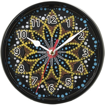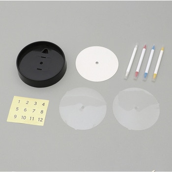 直径18cmの時計に白赤青黄の不透明インクで点描アートを描いてみよう!ドットペンでプラ板を装飾して、点描アートで飾られた時計をつくるキットです。中の紙を好きな色に着彩して背景にできます。プラ板にデザインをするため、下絵を見ながら作品を作れます。2枚のプラ板のうち、1枚は直接デザインをし、もう1枚は保護用で一番外側にします。保護用のプラ板に時計の数字のシールを貼ります。