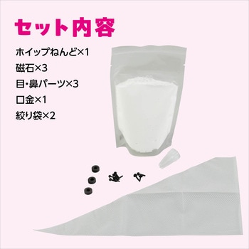 しぼって作れる!ふわふわかわいいホイップわんちゃんマグネット!デコスイーツのようにホイップねんどをしぼってつくる、見た目もかわいいわんちゃんマグネットです。専用の目・鼻パーツが付属しているので、かわいい作品がつくれます。マグネットなので冷蔵庫や連絡ボードに貼って使えます。簡単に作れてアレンジも自由なので、子ども会や親子イベントなど、ワークショップにもおすすめの素材です。【用意するもの】クリアファイル、ピンセット、飾り
