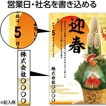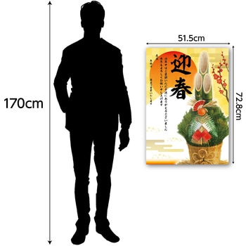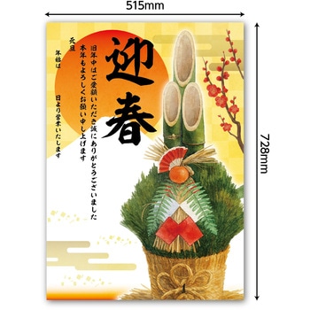 店頭にぴったり!新年のご挨拶を華やかに彩る迎春ポスター!旧年のご愛顧への感謝と新年のご挨拶を大きく美しく掲示できる、門松柄の迎春ポスターです。視認性の高いB2サイズで、店頭・受付・エントランスなどでもひと目で内容が伝わります。営業日や社名を書き込めるスペースがあり、年末年始の周知に便利な5枚入りセットです。