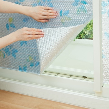 三層構造の空気層で、窓からの冷気をシャットアウトする窓断熱シート。窓辺をおしゃれに演出するリーフ柄。4mm厚みの空気層(プチプチ構造)が断熱効果を発揮!窓の外からの冷たい冷気を遮断し、室内の温かさをキープ。