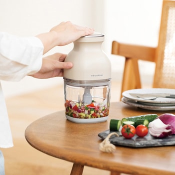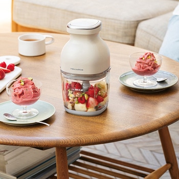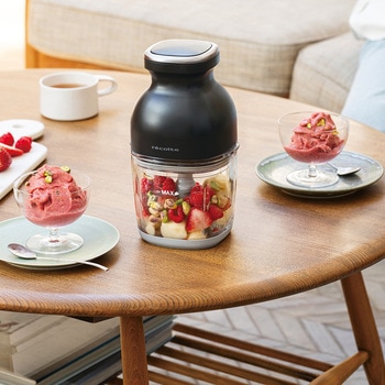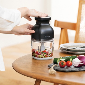 コードレスで場所を選ばず使える、コンパクトでパワフルなフードプロセッサー。ガラス製のカップは、食材が飛び散らない[カバー]付きで、液体の撹拌も可能。”刻む混ぜる砕く練るつぶす鬼おろしおろし泡立てる”の1台8役をこなします。容量は最大約500ml。