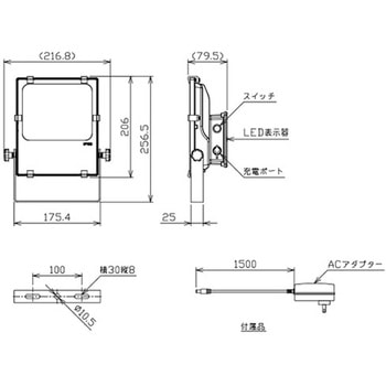 高効率のリチウムイオン電池を採用した充電式LEDライトです。本体はアルミニウム合金で、非常に丈夫で軽量で持ち運びが簡単です。また、防雨設計なので雨天時でも安心して使用できます。明るさは (H) (M) (L)と三段階の調光ができます。