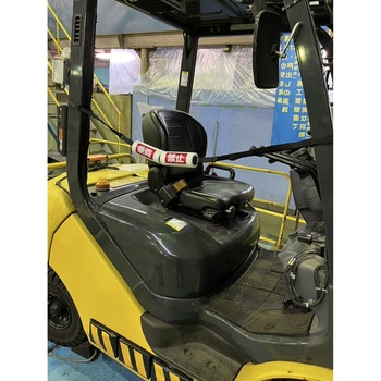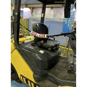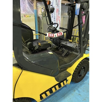 フォークリフト右側に設置し、乗降禁止の注意喚起に。