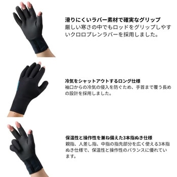 保温性と操作性、携行性を兼ね備えた冬用の汎用グローブです。両面に保温性のあるクロロプレンを使用した保温性能に優れたモデルです。親指、人差し指、中指の第一関節部分は指ぬき仕様となっており、作業性も確保しています。手首まで覆うロング仕様で防寒性にも優れています。それだけでなく手首内側には防風ストレッチ生地を採用し手首の動作が非常にスムーズに行えます。冬の釣りを楽しむための機能をしっかりと備えた汎用グローブに仕上げました。前モデルからのアップデートとして、縫製糸を変更し、ほつれにも強くなりました。