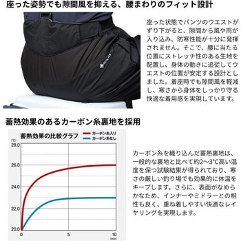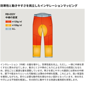 冬の釣りで求められる「保温性」と「動きやすさ」。相反するこの2つの性能を高次元で融合させたのが、このフラッグシップ防寒パンツです。中綿にはメンテナンス性と保温性に優れた「エアロカプセル(R)」を増量して採用し、保温性能を強化。さらに軽量なGORE-TEX ePEメンブレンを採用することで、従来モデル比で約10%の軽量化を実現(※Lサイズ設計値)。長時間の釣行でも動きやすさを損ないません。中綿(インサレーション)は部位ごとに密度を調整。寒さを感じやすい大腿部には140g/m2、動きやすさが求められる膝下や股まわりには120g/m2を配置し、保温性と運動性の両立を追求しています。裏地には、腰まわりに起毛トリコットを、腿から下には蓄熱性に優れたカーボン糸入り裏地を採用。動きやすさと快適性を両立した設計です。さらに、腰にあたる位置にはストレッチ性のある生地を配置し、動きに追従してウエスト位置を安定させ、隙間風の侵入も抑えます。細部まで釣りに特化した機能を積み上げることで、防寒性・動作性・フィット感のすべてを高次元でバランス。冬の釣りに集中できる、実用性の高い1本です。