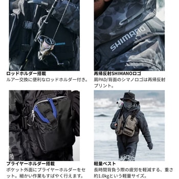必要十分な機能を搭載した、コストパフォーマンスの良いライトベストルアー用ゲームベストの、エントリーモデル。製品重量約1kgと軽量のため、従来のベストと比較し長時間背負う際の疲労を軽減します。また、ポケットは大容量で、ブライヤーホルダーやロッドホルダーも付属。釣りに求められる必要十分条件を満たす機能的なベストです。