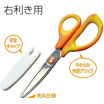 やわらかグリップ!軽い力で切れる安全はさみ!テープやのりが付きにくい非粘着刃を採用した右利き用はさみです。やわらかく握りやすい肉厚グリップを採用。軽い力でスムーズに切れる曲線刃と、厚手のものも切りやすいアーチ刃を搭載。先丸仕様と安全キャップ付きでお子さまにも安心です。テープやのりが付きにくいので、工作やクラフトにおすすめです。