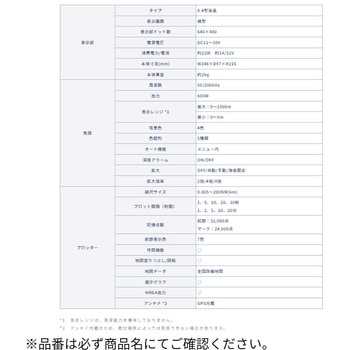 (※1):記録距離間隔 約5m、船速 約5knの場合。設定や船速等の条件により記録時間は増減します。最短では約18時間分となります。
