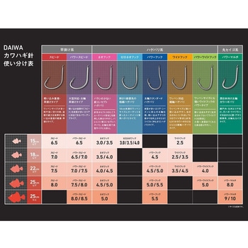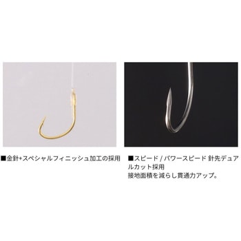 スペシャルフィニッシュに金針が登場カワハギ針として定番の金針を採用し、DAIWA独自のスペシャルフィニッシュ加工を施した。滑り性を付与することで刺さりも良くなり、金針のアピール力も兼ね備えた糸付針。ハリスは信頼のDフロン船ハリスを使用し、長さ8cmのコブ付。小分けされた10本×3袋で保存や取り出しも便利。