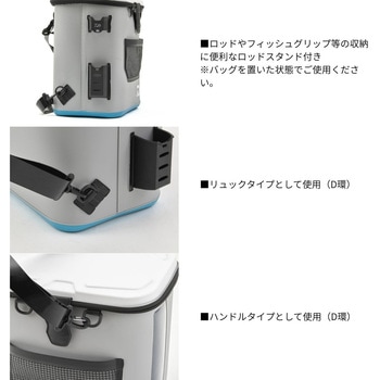 船釣りで使いやすい機能をふんだんに搭載し、このバッグ1つで釣りに行くことができる。