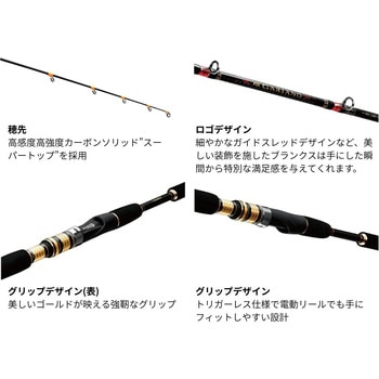 カーボンソリッド採用により、軽量オモリ使用時でも優れた感度を発揮。各号数ともに幅広い鉛負荷に対応し、多様な釣り方が可能です。ブランクスにはTORAYCA(R) T1100Gマテリアルを適所に使用し、細身・軽量ながら驚異的な強度と粘りを実現。#2にはPCS(パワークロスシステム)を採用し、ねじれ強度を向上させブレを軽減。操作時や魚とのやり取り時にロスの少ない効率的な負荷伝達を可能にし、優れたパワーへと変換します。穂先には高感度・高強度のカーボンソリッド”スーパートップ”を採用し、柔軟性と感度のバランスに優れた設計。さらに先オモリを排除したハイバランス設計により、持ち重りを軽減し、軽快な操作性を実現しています。そして、細部までこだわり抜いた贅を尽くした装飾が、所有する喜びを一層高めます。美しさと機能性を兼ね備えたデザインは、手にした瞬間から特別な満足感をもたらします。
