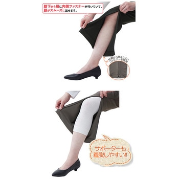 ひざ出しが楽ちんな裾ファスナー付きパンツ。パッと見た目は普通のパンツ!!ひざが出せるファスナー付きパンツ。膝下から裾に内側ファスナーが付いていて、膝がスムーズに出せます。内側にファスナーがついているので、見た目は普通のパンツです!外側から見えにくいファスナーを使用。サポーターも着脱しやすい!!ウエスト総ゴムでゆったり履けます。両脇ポケット付き。