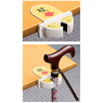 杖をポン!と押し込んで、倒れる杖をしっかりホールド。転倒事故を無くすため、杖の置き場所を決めましょう!傘ホルダーとしても使えます!縁が丸い形状のテーブルやカウンターにも取り付け可能です。杖側の直径1.5~2.5cmに取り付けできます。