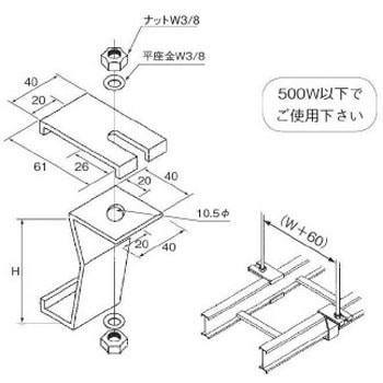 スチール製 ケーブルラックパーツ 吊り金具(A型)W3/8用