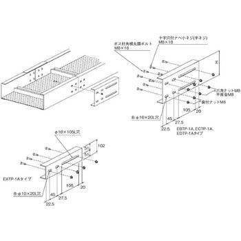 スチール製 ケーブルラックパーツ 親桁補足接続金具
