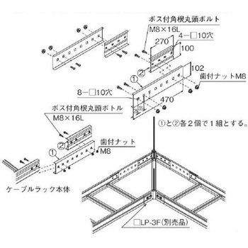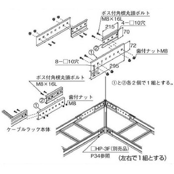 ケーブルラック用共通部材 ケーブルラック70H・100Hタイプ タテ・ヨコラック接続金具