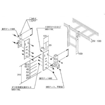 ケーブルラック用共通部材 ケーブルラック70H・100Hタイプ タテ・ヨコラック接続金具