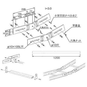 アルミニウム製 ケーブルラック 蝶番自在継ぎ子桁補強金具