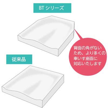 標準型とともに後方バックサポート部の角に角度のついた車いすにも使用可能。