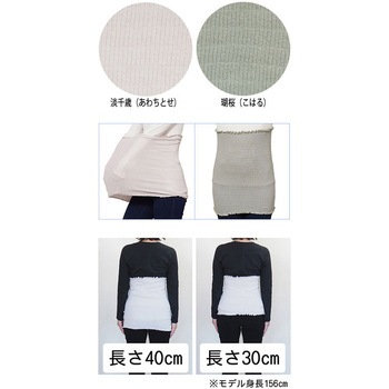 お腹を中心に温める30cmとお尻までスッポリ40cm各1枚入り。よく伸び、お腹を締め付けない薄手の綿腹巻。お肌にゴムが触れないよう加工した糸を使用。縫い目がなく滑らかな肌触り。お腹を温める30cm、とお尻まで包める40cmの腹巻が1枚ずつ入っているから、服装気候に合わせて使い分けができます。服から見えてもオシャレなくすみカラー。