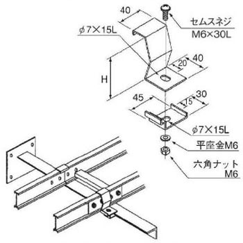 スチール製 ケーブルラックパーツ 桁違いY型ラック固定金具(A型)