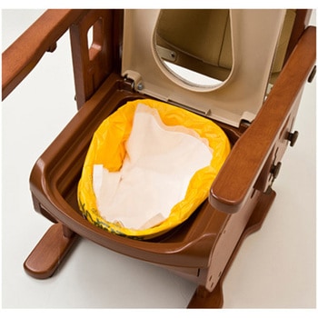 ポータブルトイレの受バケツ専用のトイレ処理袋。1回の尿量が多い方(250mL程)の場合は4回分、1回の尿量が少なめの方(150mL程)の場合は約6回分。ポータブルトイレの受バケツにジャストフィットのサイズ吸収シートが白いので健康状態の参考となる排泄物の色の確認がしやすい。し尿の入った状態でも中身が見えにくいオレンジ色の袋を採用。