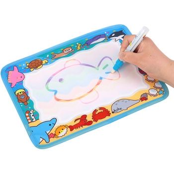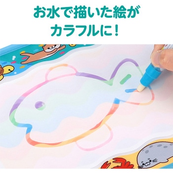 何度でも描いて消せる!水で遊ぶカラフルおえかき!水だけで描けるので汚れの心配がなく、お部屋でも気軽に使えるおえかきマットです。乾くと絵が消えるので、何度でもくり返し遊べます。かわいい海の仲間たちが縁にデザインされており、楽しみながら創造力を育てます。持ち運びしやすいサイズで、おでかけにも便利です。