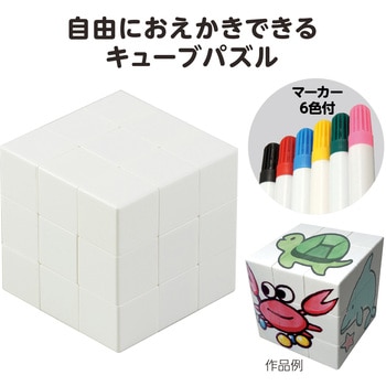 オリジナルキューブパズルをつくろう!白い3×3キューブに自由に絵を描けるパズルキットです。付属の6色マーカーを使えば、キャラクターや模様など思いのままにデザインできます。完成後はパズルとして遊べるため、工作と遊びの両方が楽しめます。プレゼントやイベント工作にもぴったりなアイテムです。
