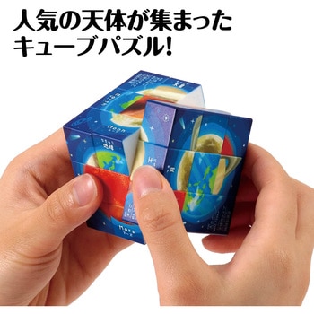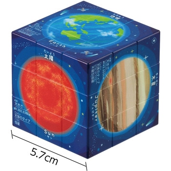 惑星をそろえて完成!楽しく宇宙を覚えるキューブパズル!太陽・地球・月・火星・木星・土星が6面に描かれた天体キューブパズルです。回しながら絵合わせを楽しむことで、英語名や大きさなど天体の特徴や名称を自然と覚えられます。コンパクトで持ち運びにも便利なため、おでかけ先でも楽しめます。