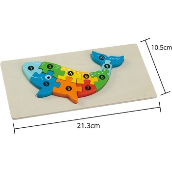 はじめての数字遊びにぴったり!くじらの木製パズル!カラフルな10個の数字ピースを順番に組み合わせてくじらを完成させる木製パズルです。厚みのあるピースで小さなお子さまでもつかみやすく、集中して遊べます。楽しみながら数字の理解や手先の発達を促す知育玩具です。完成後はそのまま飾ってもかわいいパズルです。